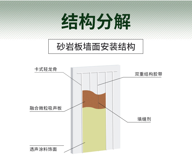 砂巖吸音板,精選特定目數(shù)的天然砂粒,將膠凝材料 均勻且極薄地覆蓋于全部微粒表面,形成特定角形系數(shù) 的覆膜微粒。該微粒在外力作用下,覆膜層固化,使微小顆粒就像被焊接一樣聚合在一起,微粒之間天然地形成了大量的、不規(guī)則的、相互連通的微小孔隙。